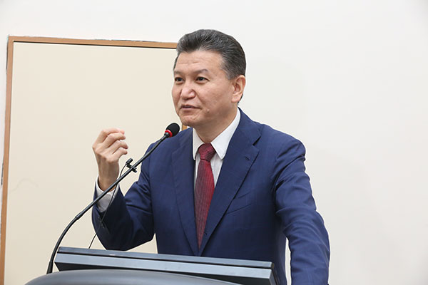 Kirsan Ilyumzhinov addressed the students and talked about his life and how he earned his first million. He noted that he introduces chess in schools in Kalmykia and it helped Kalmykian children regularly took prizes at Olympiads in mathematics, physics, and biology.