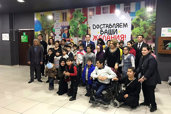 The children spent their time at Samarkand Darvoza mall. They watched 3D movie ad played in modern playground. The children were treated with festive dinner and received gidts.