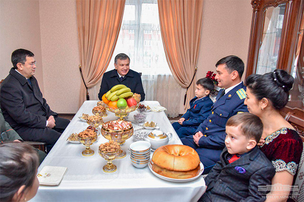 Uzbek leader visited new apartments, where families of Jasur Tursunkulov and Jamshid Kattakulov were having a housewarming, and talked with the owners.