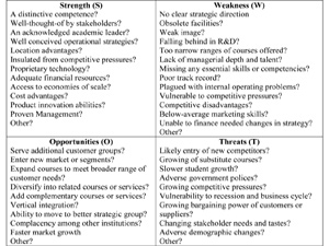 SWOT is traditionally created in the form of a table: