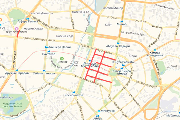 Tashkent, Uzbekistan (UzDaily.com) -- In connection with the New Year’s festivities in Tashkent, traffic on several streets of the capital will be restricted from December 24, 2018 to January 10, 2019. This was reported by the press service of Tashkent khokimiyat.
