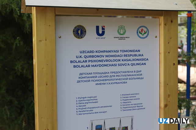 Tashkent, Uzbekistan (UzDaily.com) — As part of its 20th anniversary celebration, Uzbekistan’s national payment system UZCARD has completed a charitable project by building a modern playground for young patients at the Republican Pediatric Psychoneurological Hospital named after U. K. Kurbanov.