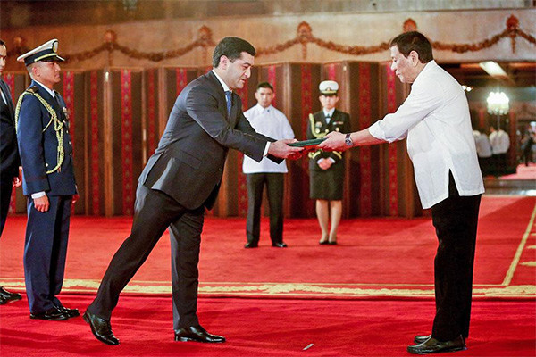 24 июля Саидов вручил верительные грамоты президенту Филиппин Родриго Роа Дутерте, сообщает ИА «Дунё».