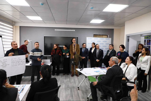Делегация посетила Педагогический центр Бухарской области, где состоялся обмен мнениями о развитии профессиональных компетенций учителей, внедрении цифровых технологий и методов инклюзивного обучения.