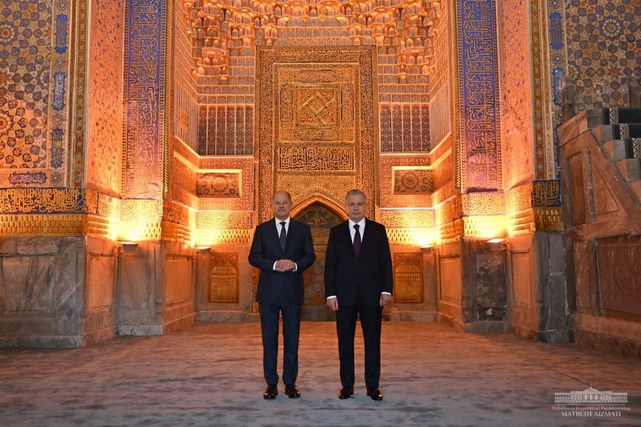Во время визита Олаф Шольц был ознакомлен с историей и архитектурными особенностями этого восточного шедевра, а также с культурным наследием узбекского народа. Президент Мирзиёев и канцлер Шольц обсудили значимость Самарканда как важного международного делового и туристического центра.