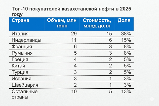 Ключевым риском остается высокая зависимость от российской инфраструктуры: около 80% казахстанской нефти экспортируется через Каспийский трубопроводный консорциум. Италия формально выступает ключевой точкой регистрации поставок. Нефть поступает морскими танкерами в порт Триест, после чего транспортируется по трубопроводу TAL и далее распределяется между Австрией, Германией и Чехией.