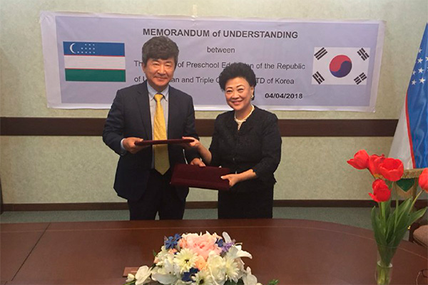 Министр дошкольного образования Агрепина Шин провела переговоры с руководителем компании Triple Crown Co. Ltd Чун Кюнсиком. Документ был подписан по итогам переговоров.