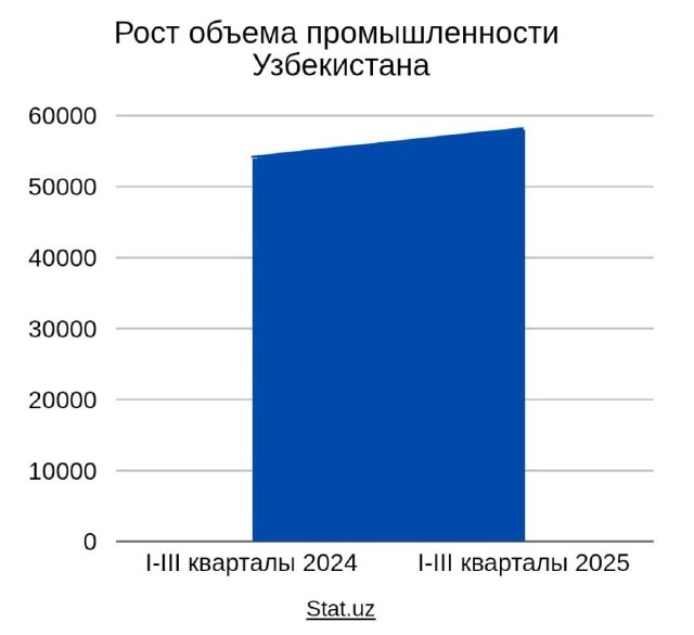 В январе-сентябре 2025 года промышленный рост Узбекистана составил около 6,8% по сравнению с аналогичным периодом 2024 года, при этом на долю Ташкента пришелся самый большой объем продукции в стране.