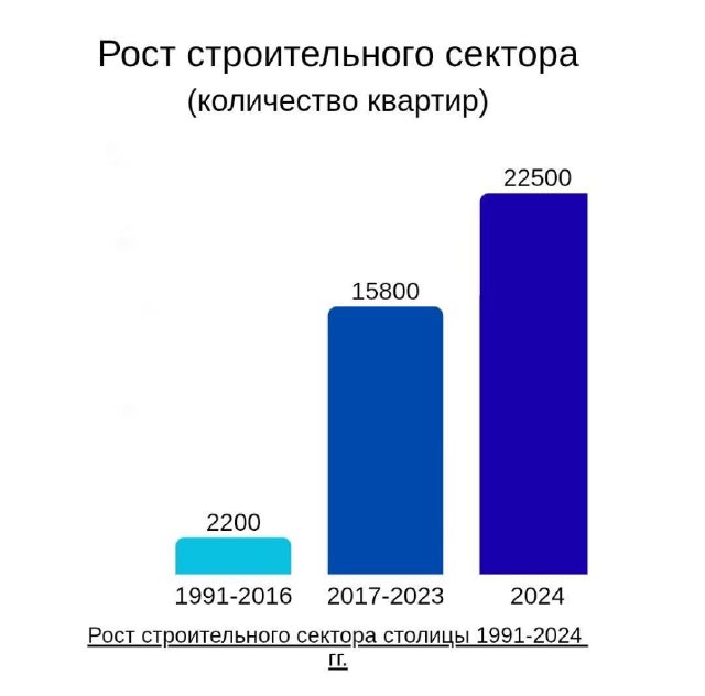 Если в 1991-2016 годах ежегодно строилось в среднем 2200 квартир, то в 2017-2023 годах было построено уже 15,8 тысячи. В 2024 году было построено уже 22,5 тысячи квартир.