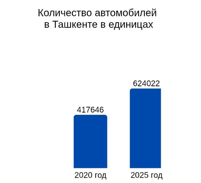 Количество автомобилей в столице также быстро растёт. С 2020 года оно увеличилось с 417 тысяч до 624 тысяч на сегодняшний день. Рост составляет 50%.