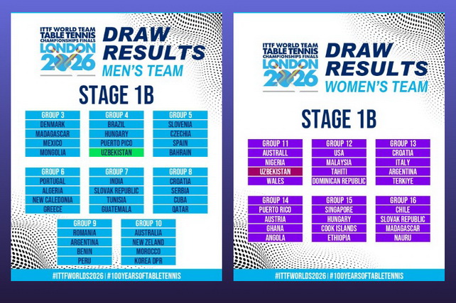 Определены соперники сборных Узбекистана по настольному теннису на чемпионате мира