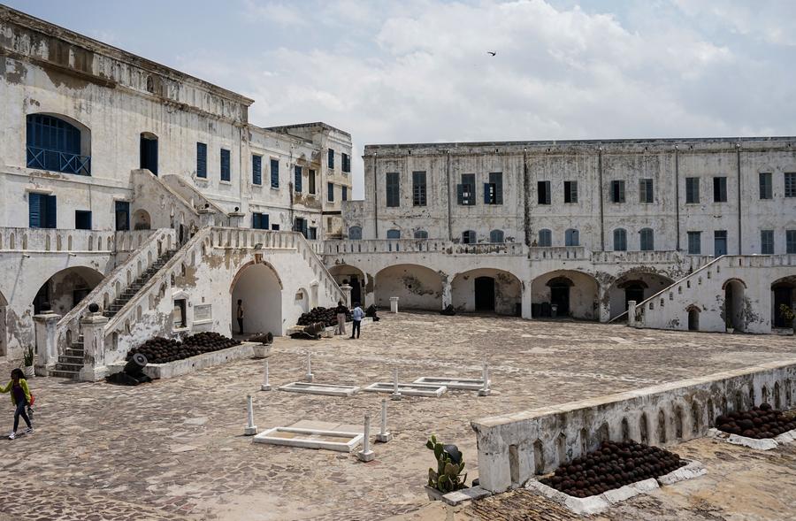 Пушки на стенах замка Кейп-Кост, расположенного на побережье Центральной области Ганы, смотрят в сторону Атлантического океана. По данным Р. М. Менсы, европейцы построили более 60 замков вдоль побережья Западной Африки, в том числе более 40 в Гане, чтобы облегчить трансатлантическую работорговлю.