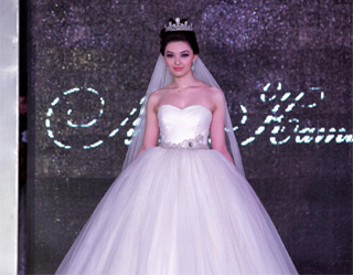 Открыл показ свадебных нарядов салон «Miss Kamilla». Разнообразие кроя, линий и отделки свадебных нарядов не оставил никого равнодушным. Необычайно элегантные наряды, строгая классика, нежность кружев и блеск жемчуга – все это присутствовало в коллекции на подиуме. В конце показа ведущие разыграли викторину и победительницы получили в подарок сверкающие украшения из кристаллов и жемчуга.