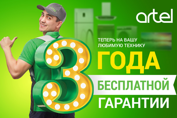 Развиваясь, каждый производитель осознаёт важность построения долгосрочных и максимально доверительных отношений между производителем и потребителем. В основе этих отношений стоит уверенность в качестве продукции как со стороны потребителя, так и со стороны производителя того или иного товара. Именно поэтому теперь полная гарантия на крупную бытовую технику Artel распространяется на 3 года с момента покупки товара.