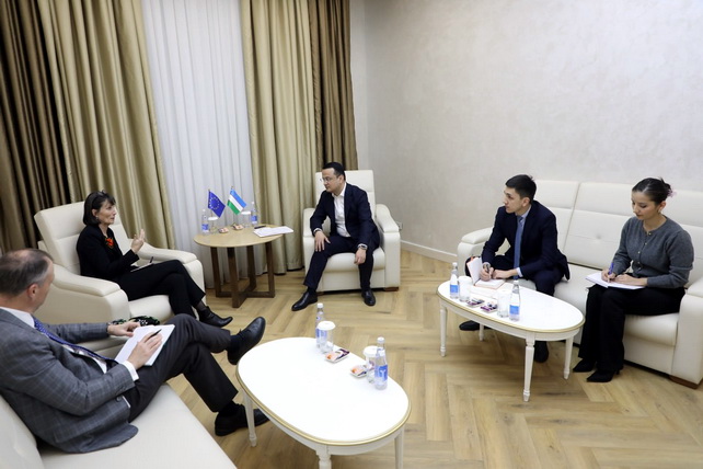 Ташкент, Узбекистан (UzDaily.uz) —10 февраля Министр инвестиций, промышленности и торговли Республики Узбекистан Лазиз Кудратов провёл встречу с Шарлоттой Адриан, руководителем отдела по Центральной Азии и Афганистану Генерального директората по международному партнёрству Европейской комиссии (DG INTPA), и Тойво Клааром, Послом Европейского союза в Республике Узбекистан.