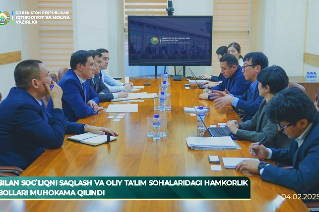 Ташкент, Узбекистан (UzDaily.uz) —4 февраля заместитель министра экономики и финансов Узбекистана Отабек Фозилкаримов провёл встречу с представителями Японского агентства международного сотрудничества (JICA), посвящённую вопросам двустороннего сотрудничества в области реформирования системы здравоохранения и подготовки кадров в сфере высшего образования.