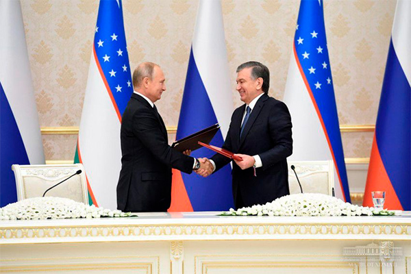 Состоялся обмен подписанными в рамках визита документами. Это Программа экономического сотрудничества на 2019-2024 годы, Программа сотрудничества в культурно-гуманитарной сфере на 2019-2021 годы, «Дорожная карта» по созданию Международной радиоастрономической обсерватории «Суффа», Соглашение о создании и функционировании филиалов ведущих вузов России в Узбекистане, Соглашение о сотрудничестве в текстильной промышленности.