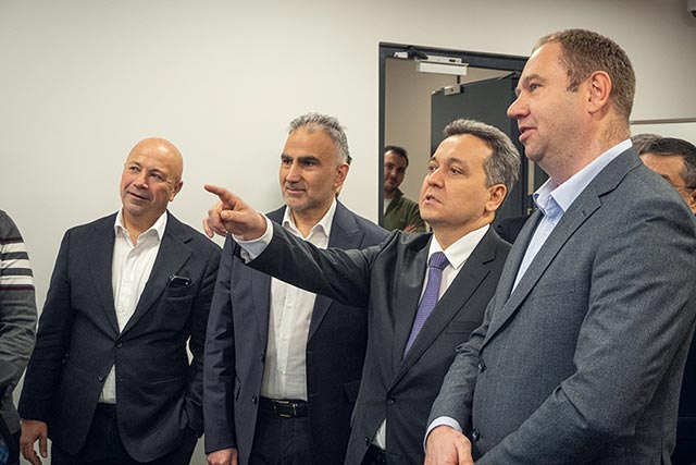 Sherzod Shermatov, O‘zbekiston Respublikasi Raqamli texnologiyalar vaziri, Kaan Terzioglu, VEON Group bosh ijrochi direktori, Andrey Pyatakhin, Beeline Uzbekistan bosh ijrochi direktori va Gediz Sezgin, Beeline Uzbekistan texnologiyalar va innovatsiyalar bo‘yicha direktor, Toshkent shahrida Tarmoq monitoringi va boshqaruv markazining ochilish marosimida.